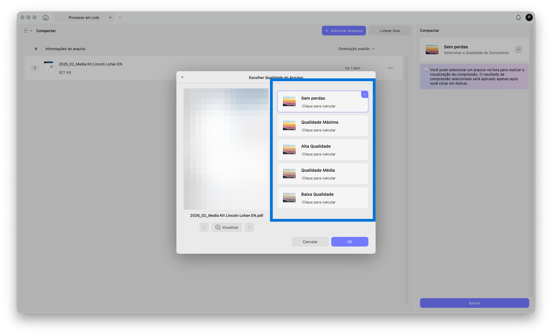 Sempre que preciso fazer upload de um PDF grande em alguma plataforma, o UPDF resolve na hora. Você compacta com alta qualidade e o arquivo fica significativamente menor sem perda visual perceptível.
